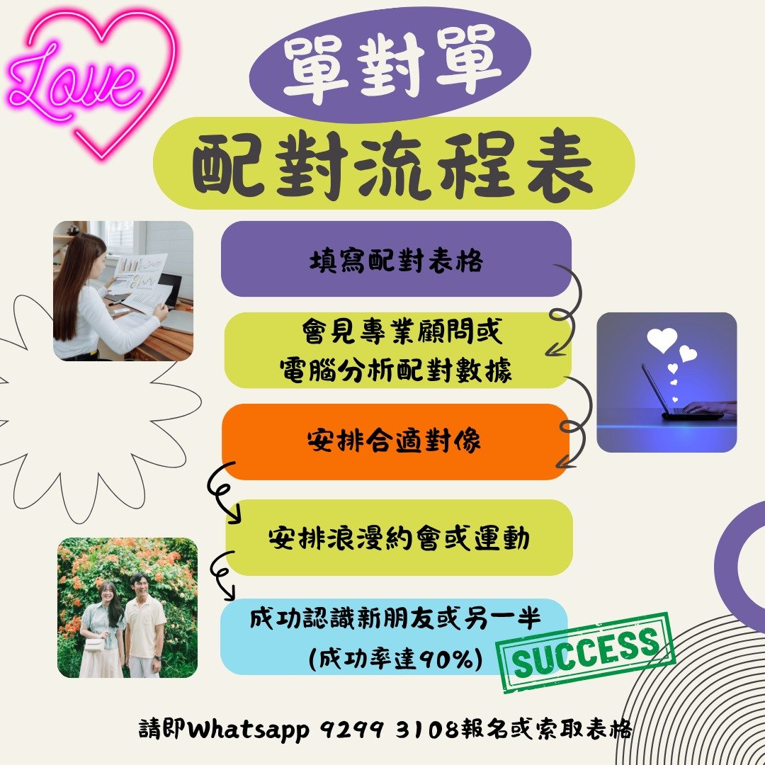 根據會員的特定需求,結合電腦資料篩選,提供最佳匹配方案,並且在配對過程中有專人全程跟進服務。